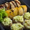 2 tartar – 2 guacamole – 4 philadelphia – 4 maki salmón – 8 salmón hot- 10 calentitos – 5 niguiris hot
