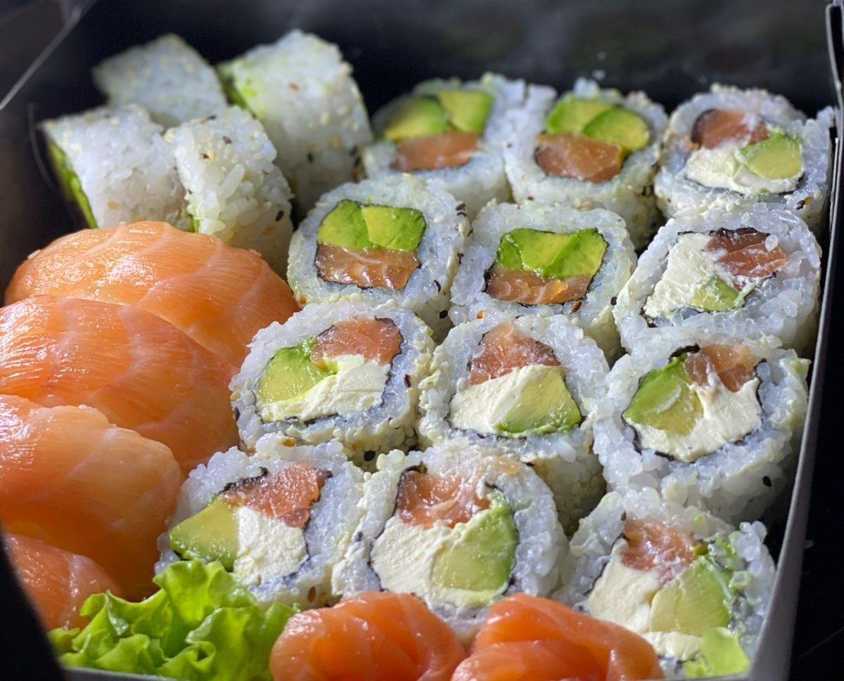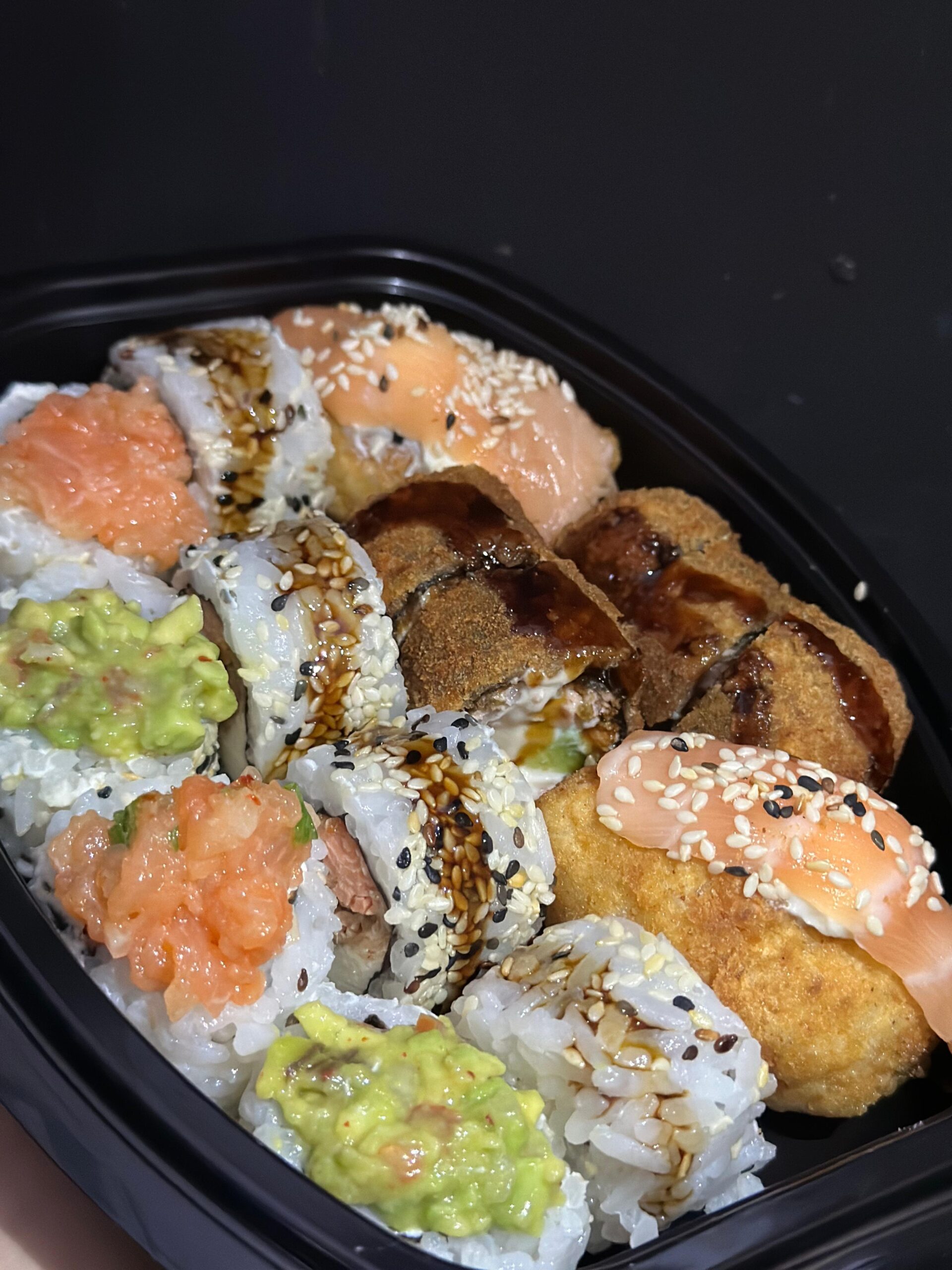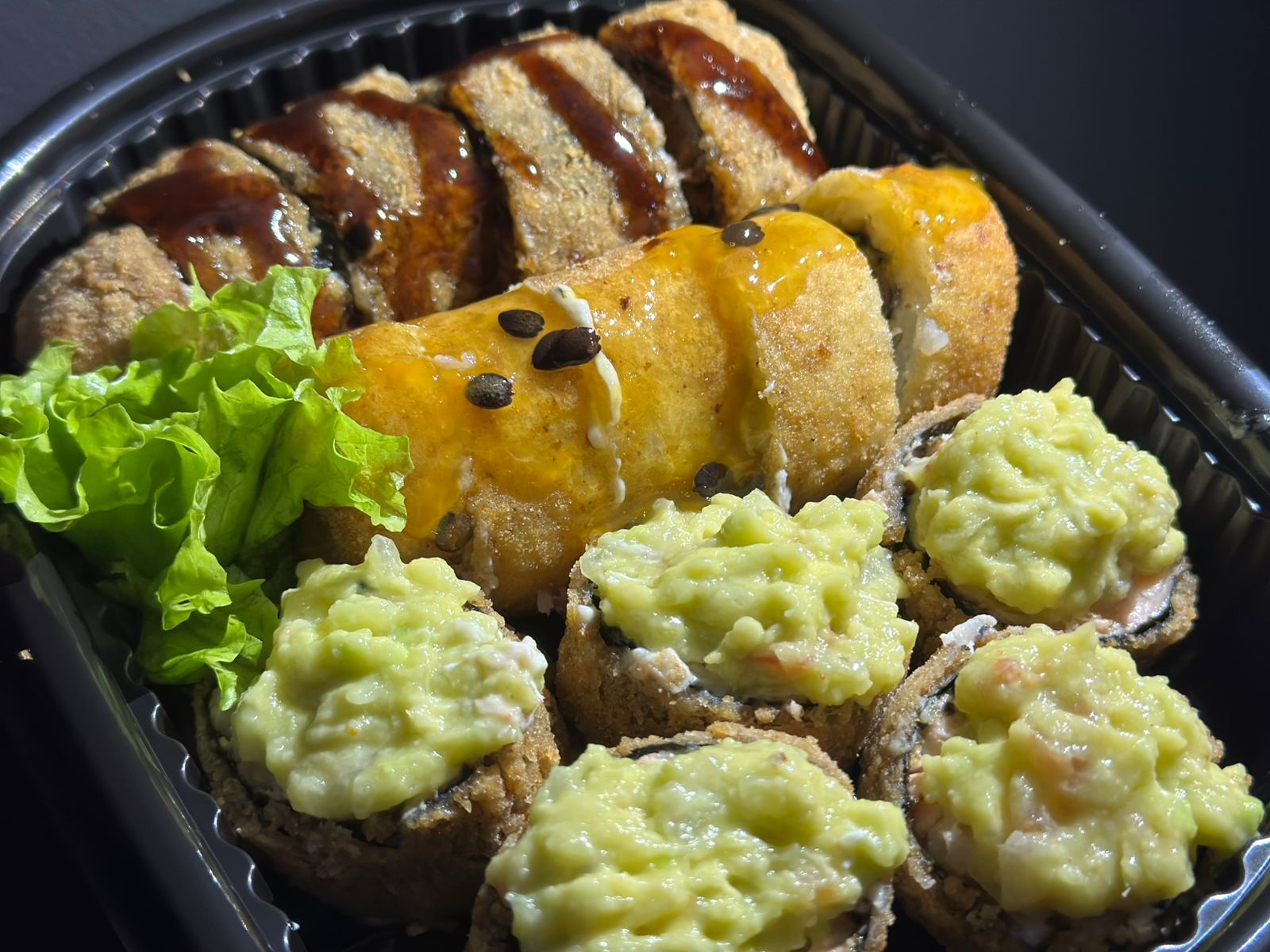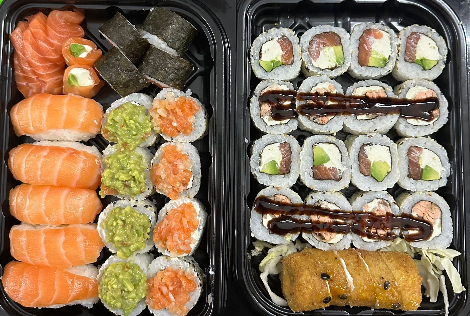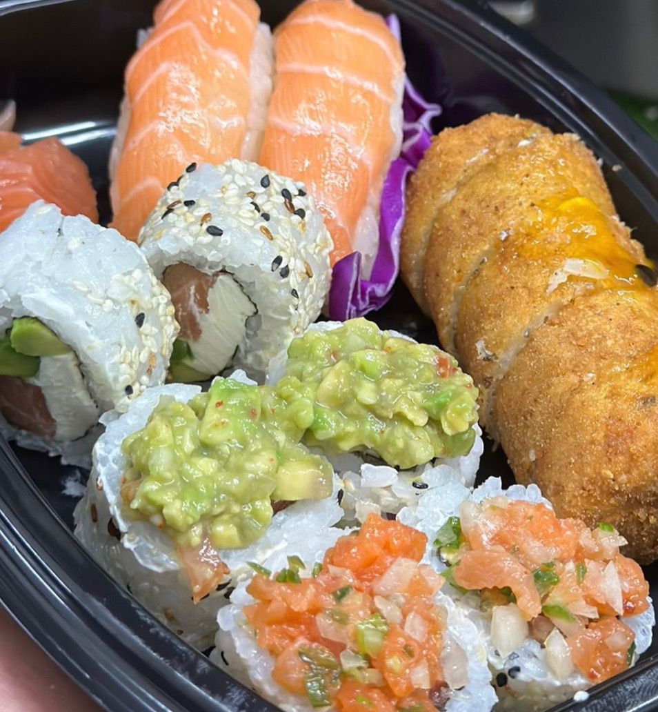 2 tartar – 2 guacamole – 4 philadelphia – 4 maki salmón – 8 salmón hot- 10 calentitos – 5 niguiris hot