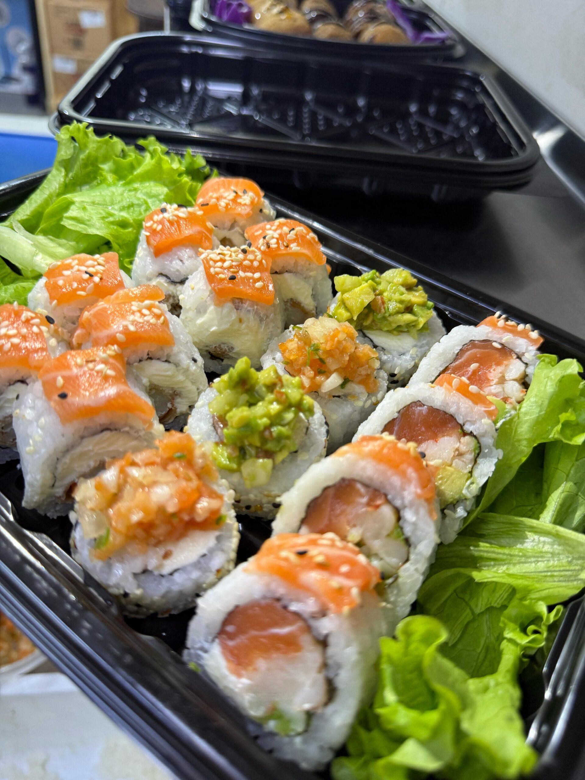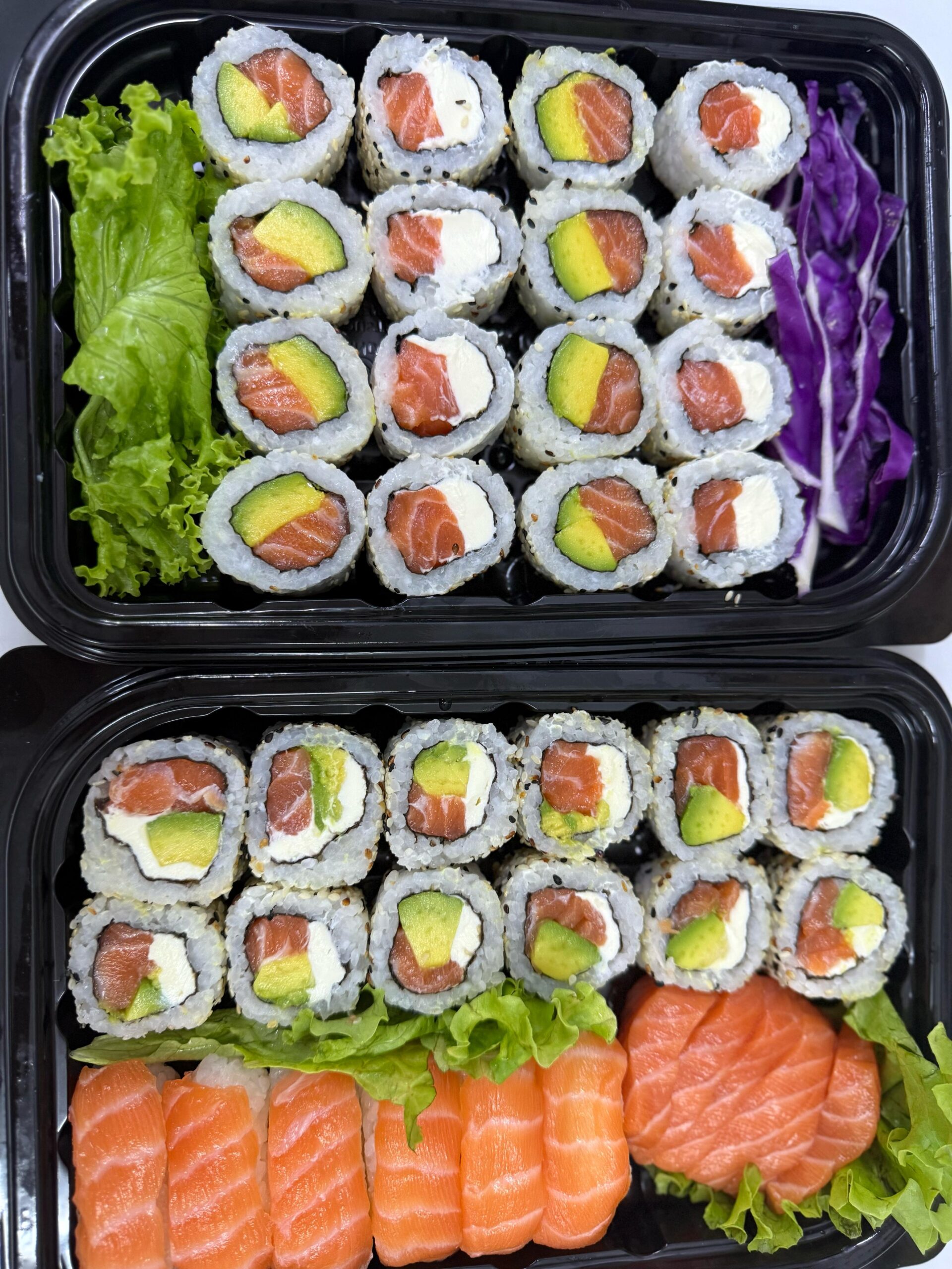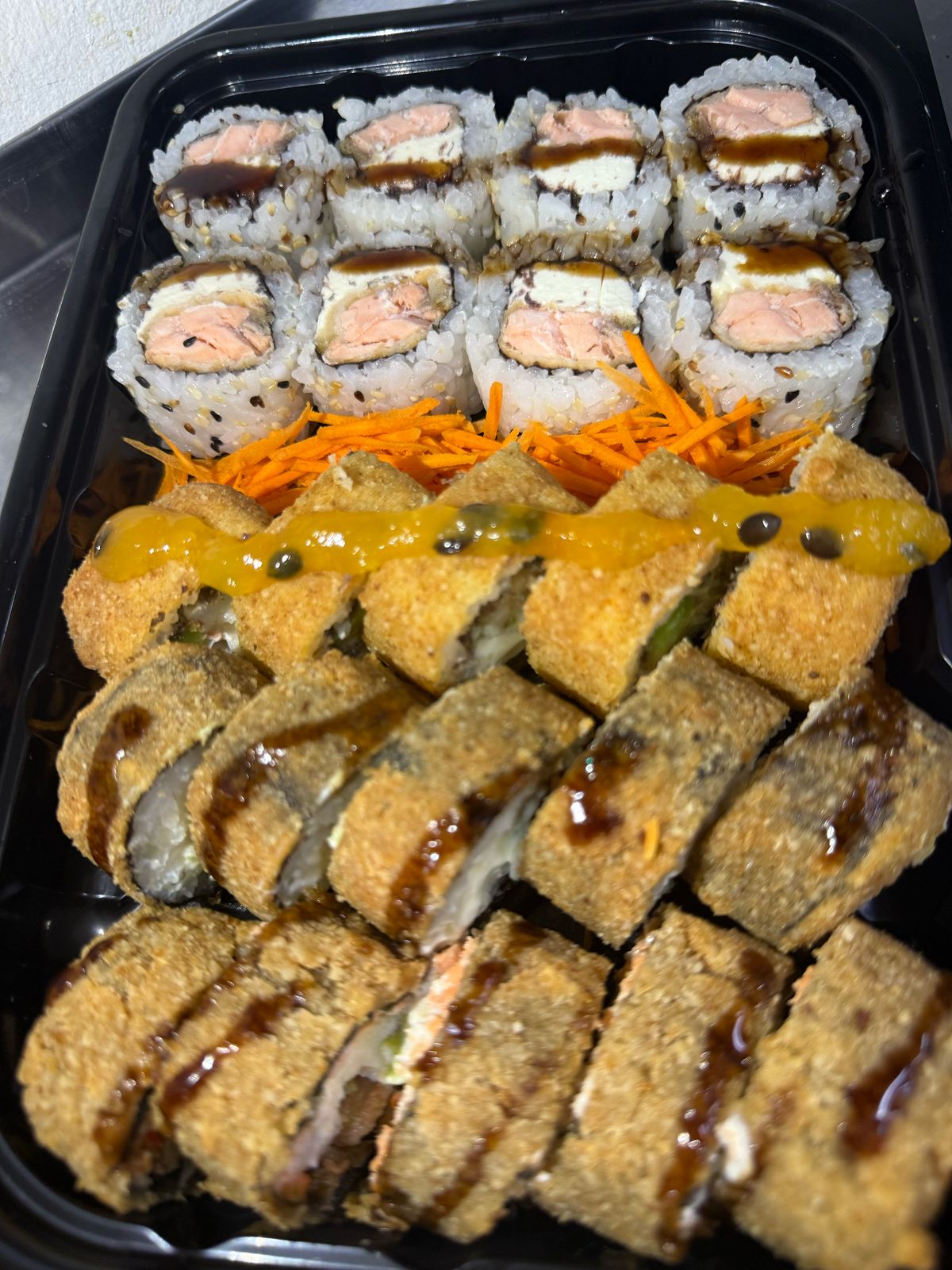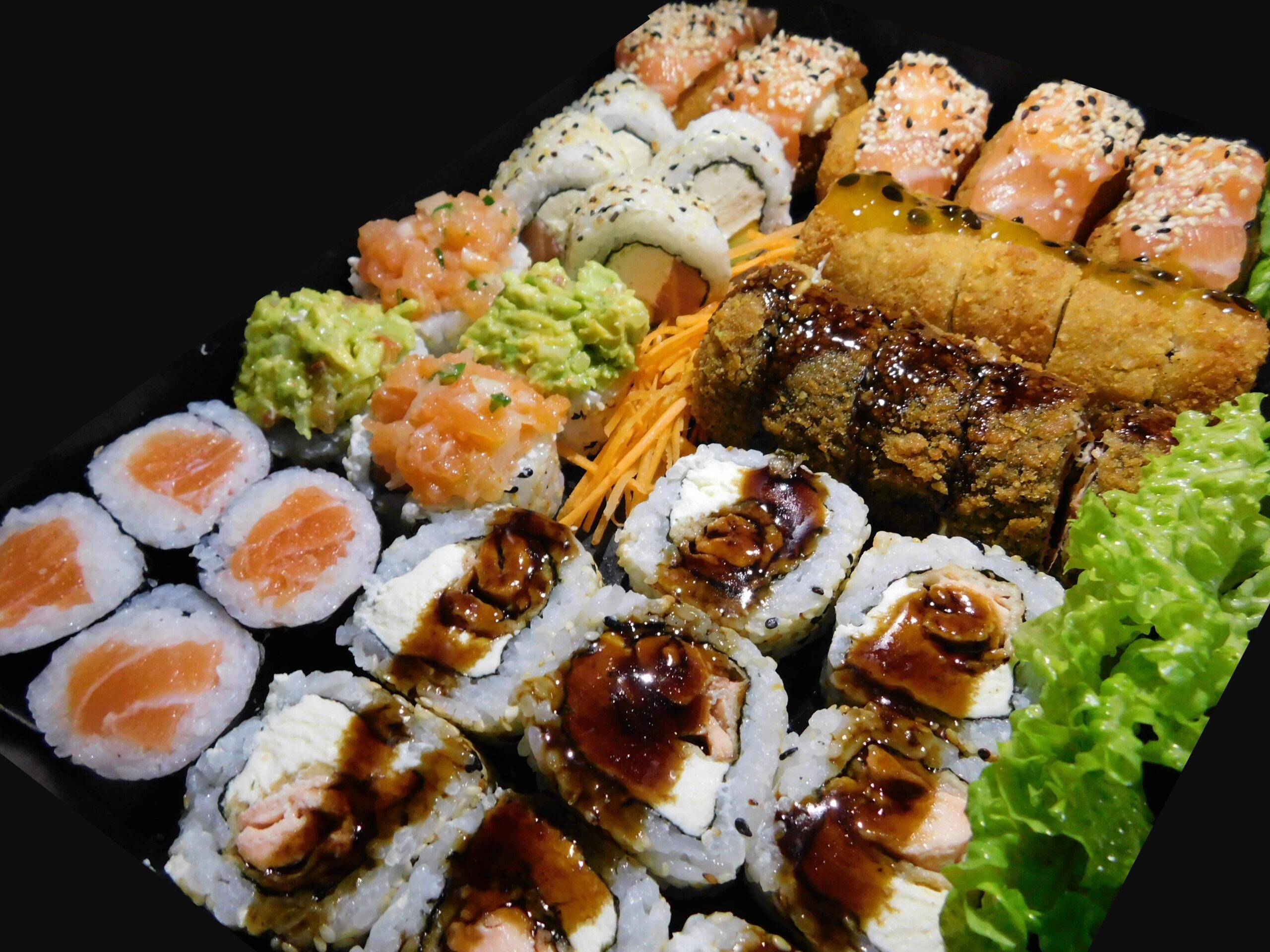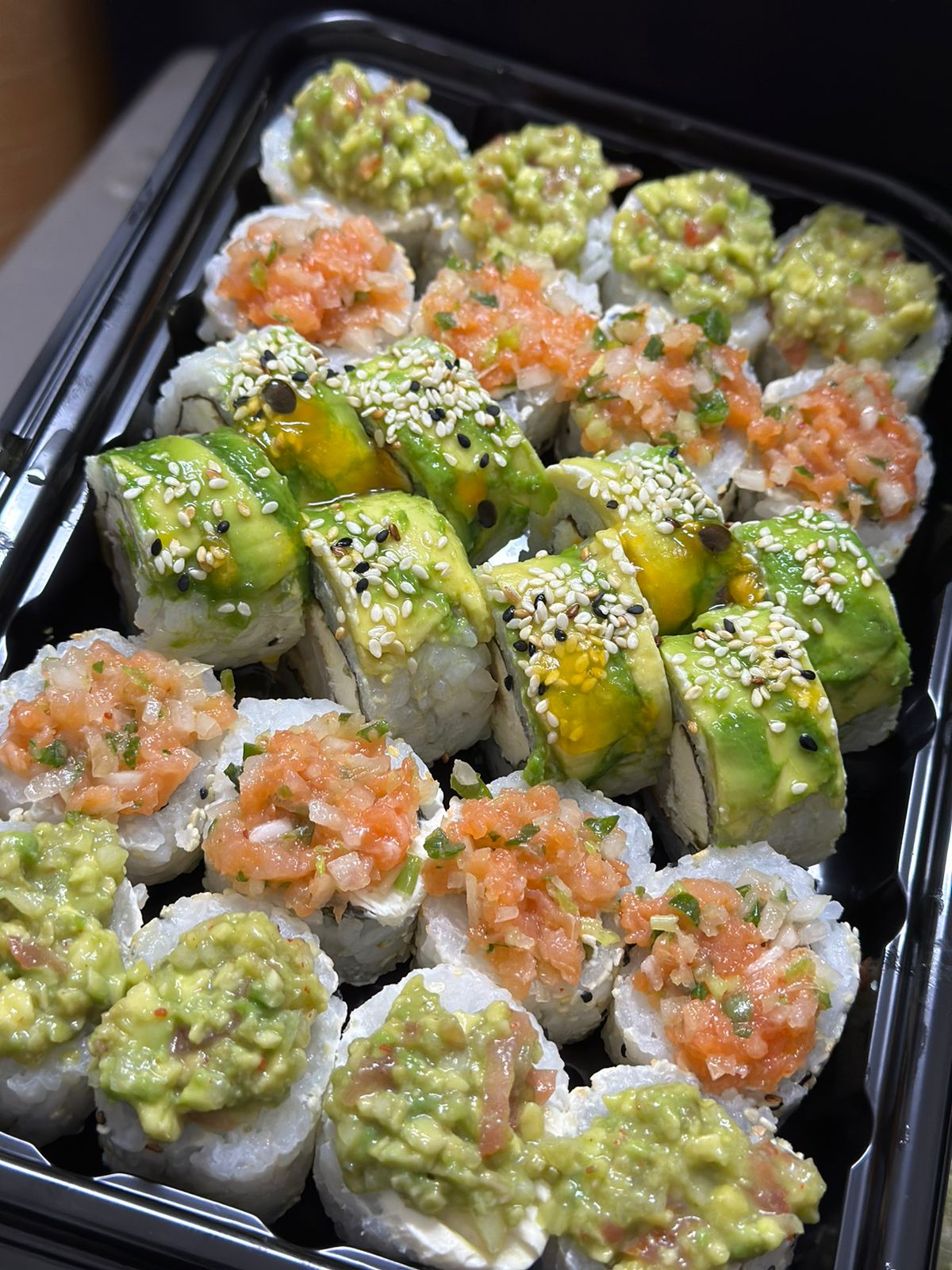 2 tartar – 2 guacamole – 4 philadelphia – 4 maki salmón – 8 salmón hot- 10 calentitos – 5 niguiris hot