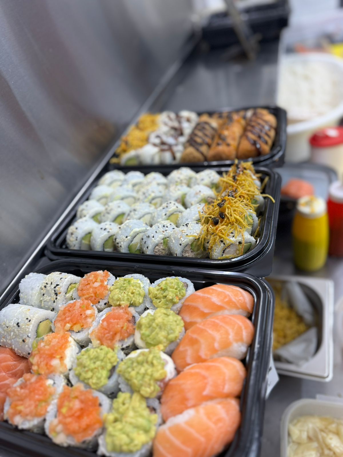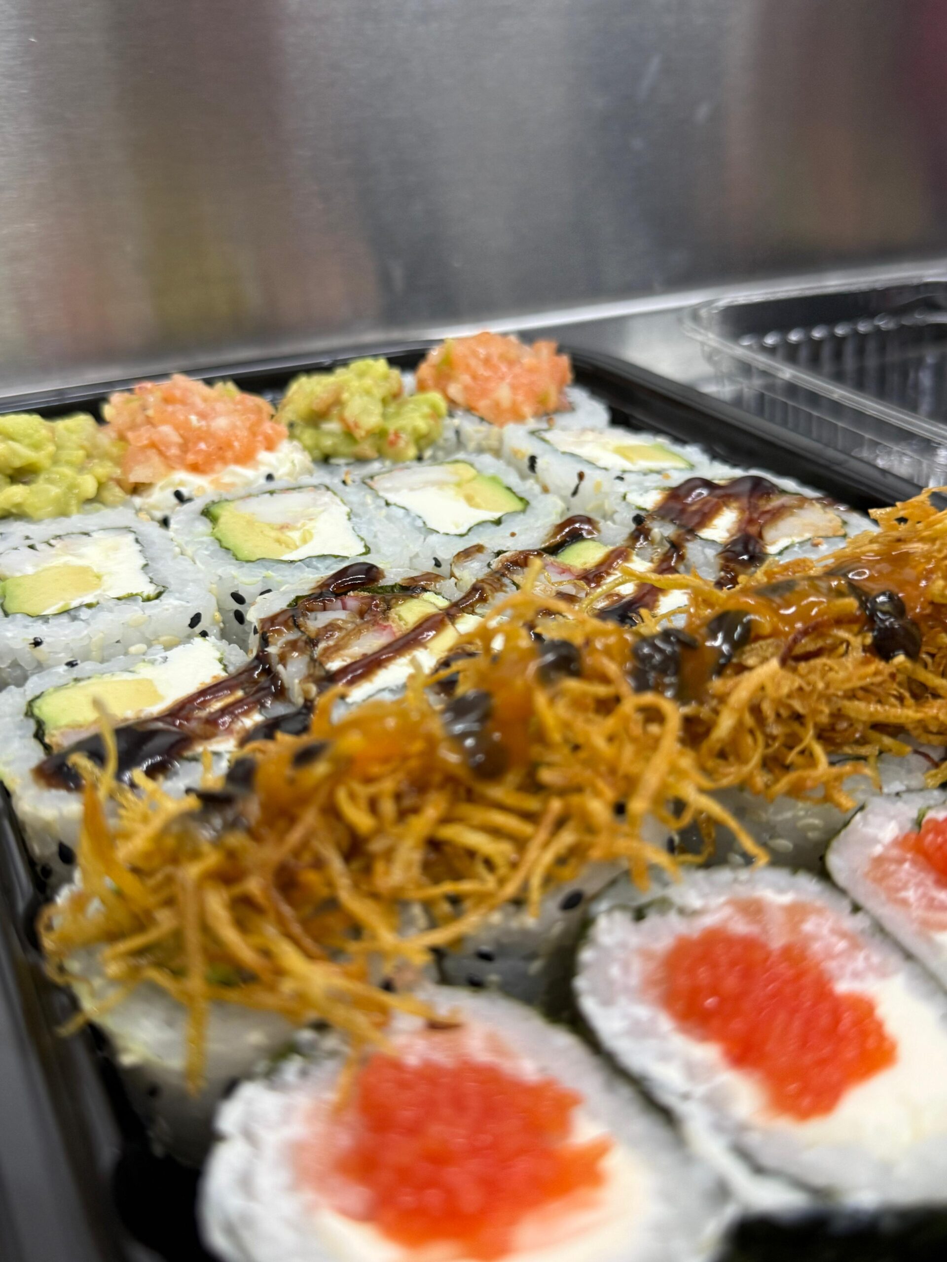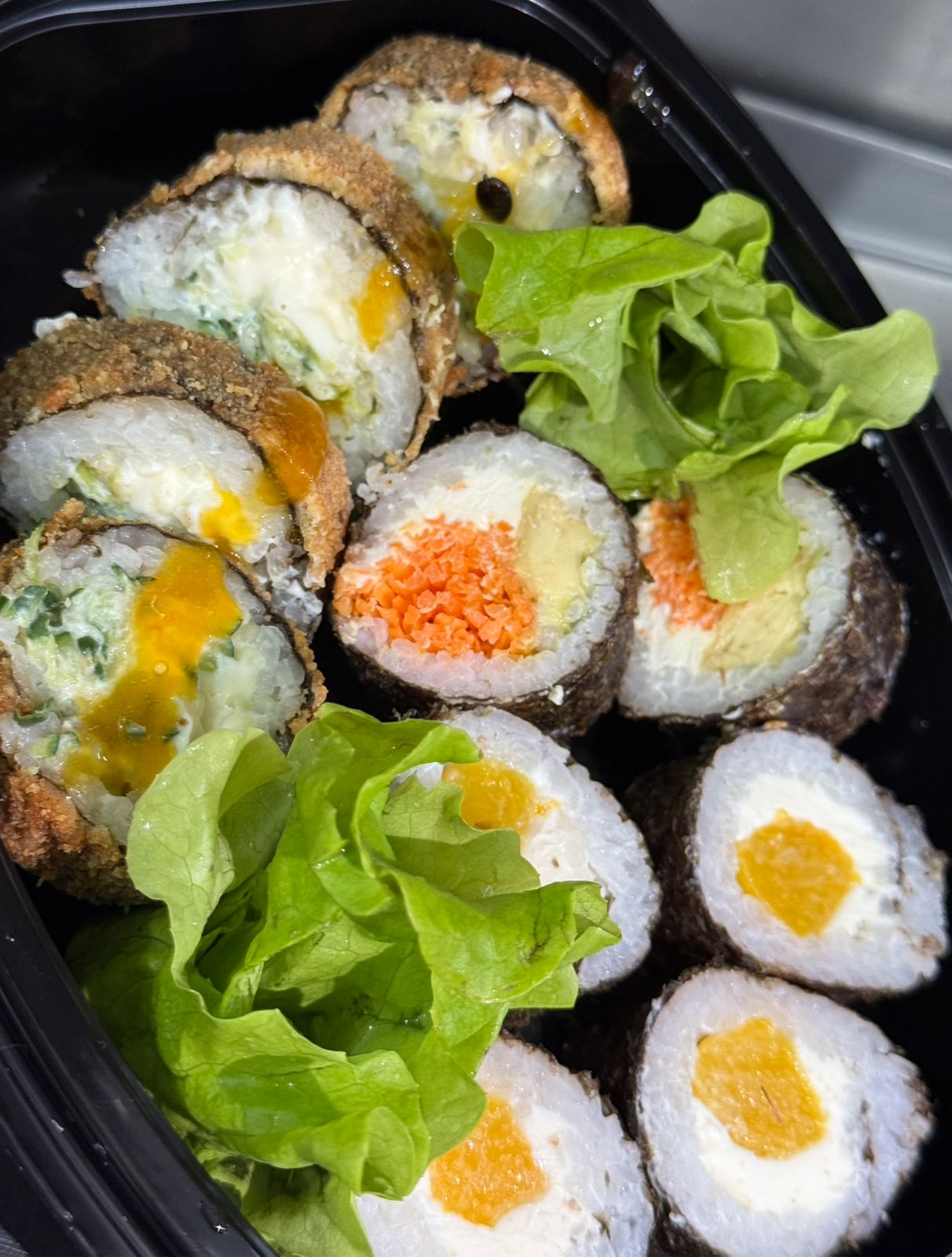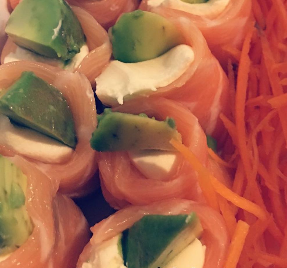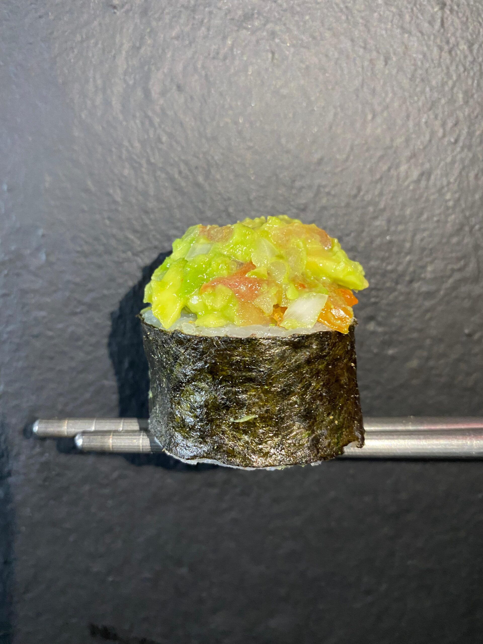 2 tartar – 2 guacamole – 4 philadelphia – 4 maki salmón – 8 salmón hot- 10 calentitos – 5 niguiris hot