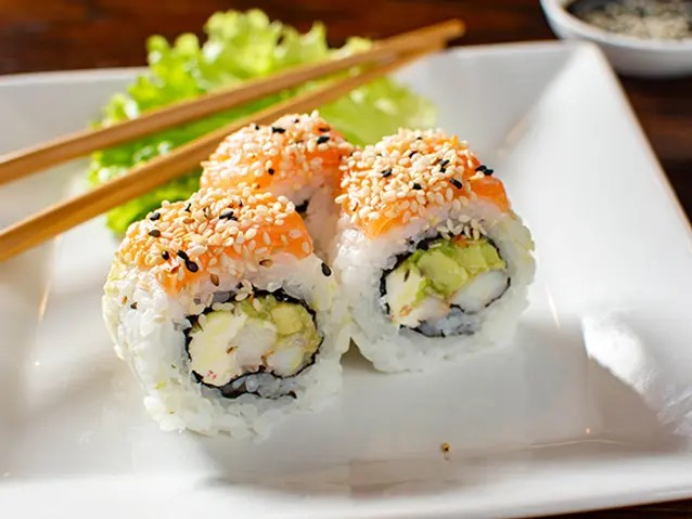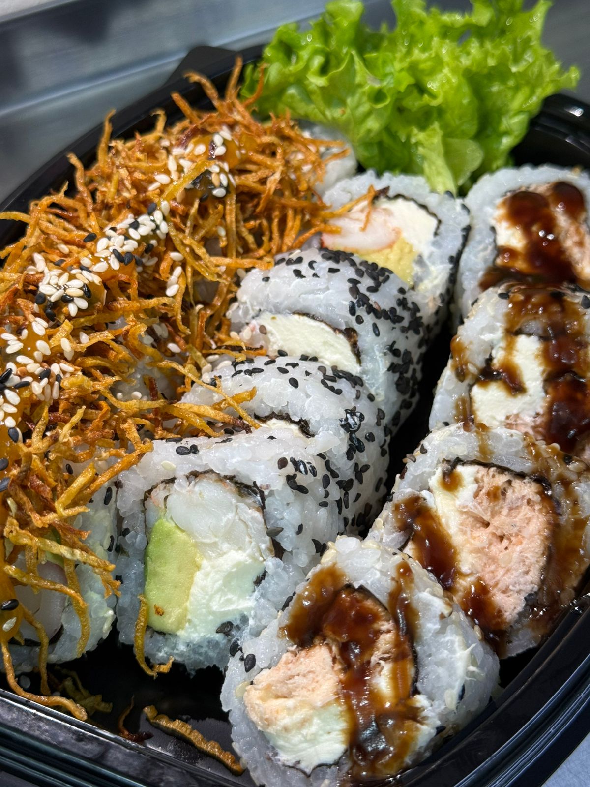 Salmon Crudo, salmon cocido, langostinos,veggies kanikama, calentitos rebozados (TABLA NO MODIFICABLE) 2 sojas.AS PROMOS NO TIENEN DESCUENTOS EXTRAS.