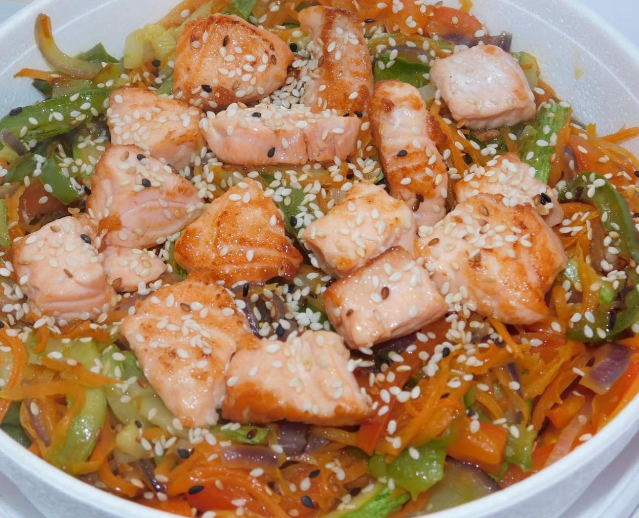 90 % salmón 10% langostinos. La más vendida (TABLA NO MODIFICABLE). 2 SOJAS