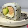 Salmon, Langostinos, palta y queso, envuelto en alga coronado con guacamole (sin arroz)